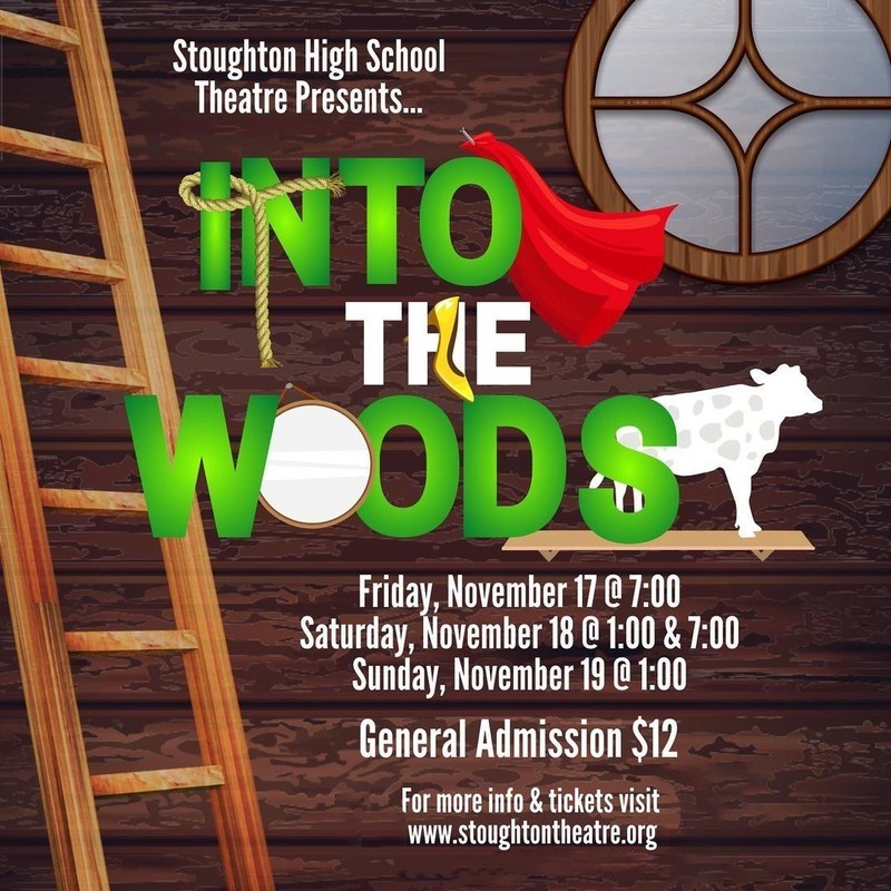 The Stoughton High School Theatre program will be presenting "Into the Woods" this coming weekend at the SHS Auditorium! Performances take place Friday, November 17 at 7pm, Saturday November 18 at 1pm and 7pm, and Sunday, November 19 at 1pm. Click here for tickets and for more information.